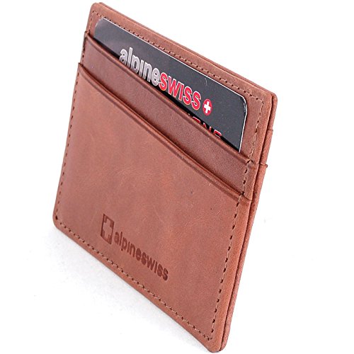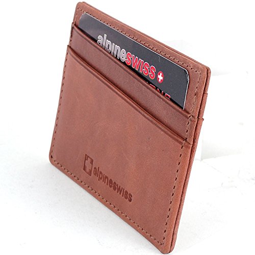 AlpineSwiss Leather Card Case Wallet Slim Super Thin 5 Card Slots Front Pocket