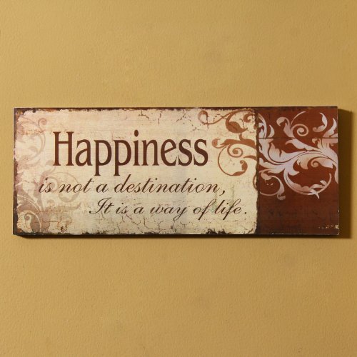 Adeco Decorative Wood Wall Hanging Sign Plaque, "Happiness" Burnt Orange Beige Home Decor - 14.9x5.9 Inches