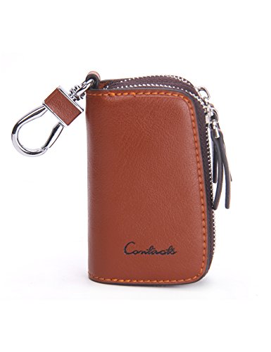 -. Title : Contacts Genuine Leather Double Zipper Car Key Wallet Men Women Key Holder Organizer Black