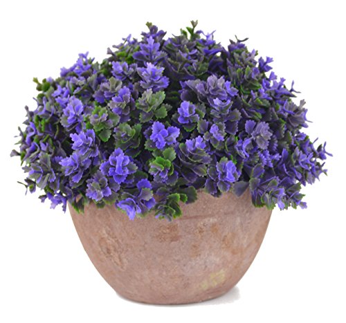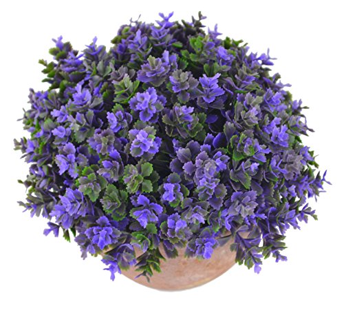 Samyo 5 Inch Mini Artificial Plant Potted Lifelike Four-leaved Clover in Pot Fake Flower for Home office Decor (Purple)