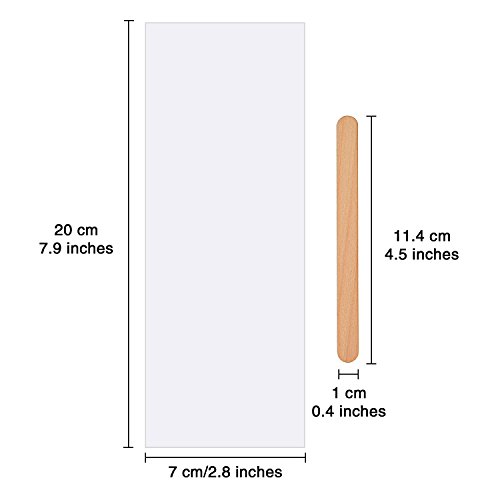 - Specifications: size of wax strip is approx. 7 x 20 cm/ 2.8 x 7.9 inches (LW), the wax applicator sticks measure approx. 11.4 cm/ 4.5 inches in length, 1 cm/ 0.4 inch in width and 0.2 cm/ 0.08 inch in thickness