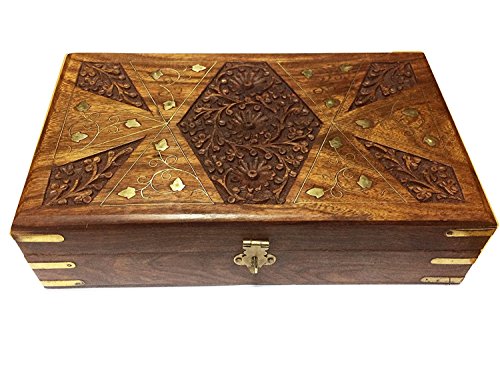 Thanks Giving Gift for your Loved OnesWooden Jewelry Box, corner carving inlay storage box, Vintage Box, Keepsake Box 10X6 inch.