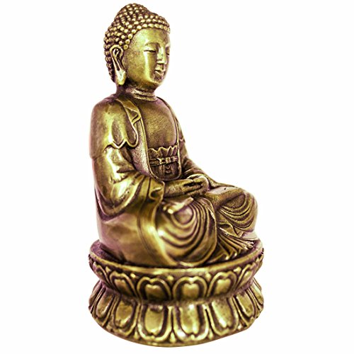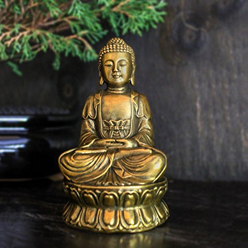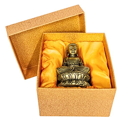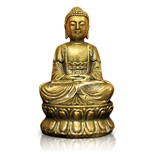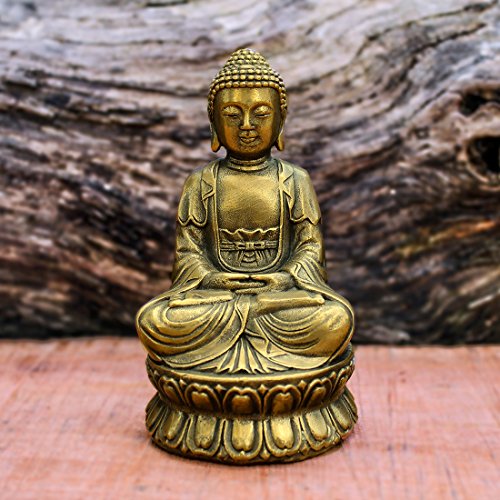 Buddha Statue Hand Made Crafted From Brass 4.33" Traditional Buddhism Sitting Shakyamuni Small Metal Buddha Religion Sculpture Feng Shui Buddhist Religious Asian Style Home Decor Gift Box