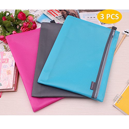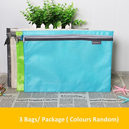 Mesh Zipper Bags Waterproof A4 Paper File Storage Office Document Bags Document File Pocket Students Files Category Bag Suitable for A4 Paper / 3 Pieces ( Colours Random) (Mesh Cloth)