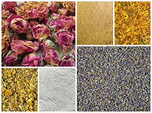 DIY Herb Sampler Each package contains 0.5 oz each of chamomile, lavender, calendula, red rose, aloe vera powder, and a bonus of Dead Sea salt with a sachet to make a bath soak. Our herbs are certified food grade organic, which means they are only the best quality and the fragrance is strong and beautiful!
