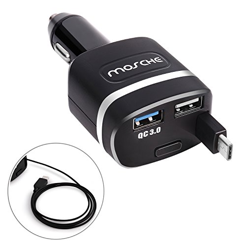 Type C Car Charger, Dual USB Car Chargers with Cable, Quick Charge 3.0 for Galaxy S8, S8 Plus, Android Phone, QC 3.0