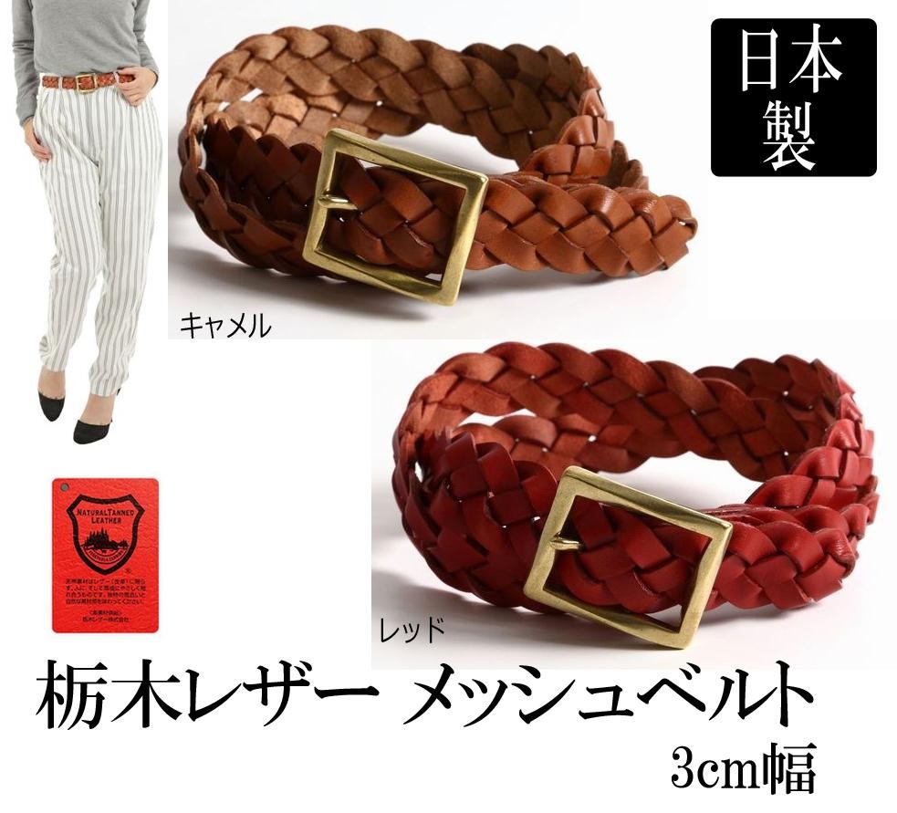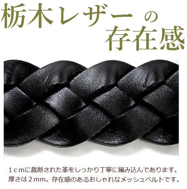 | 栃木レザーの風合いが楽しめるメッシュベルト。 |