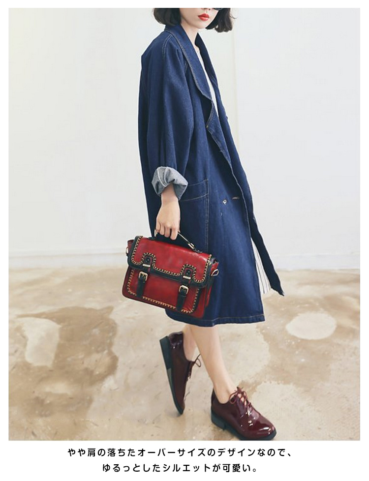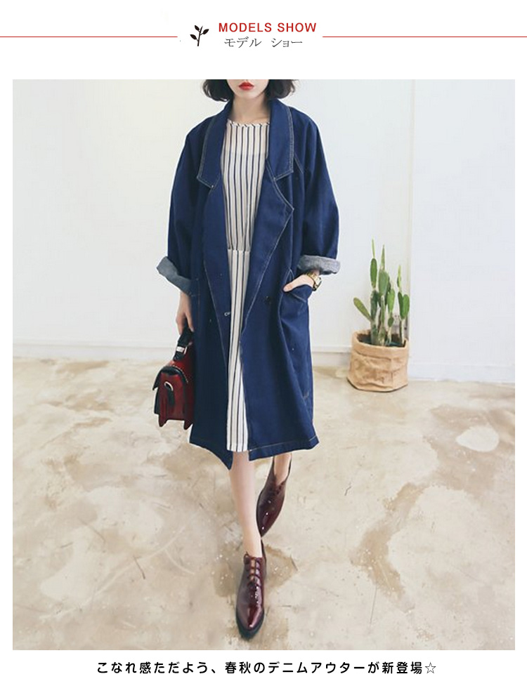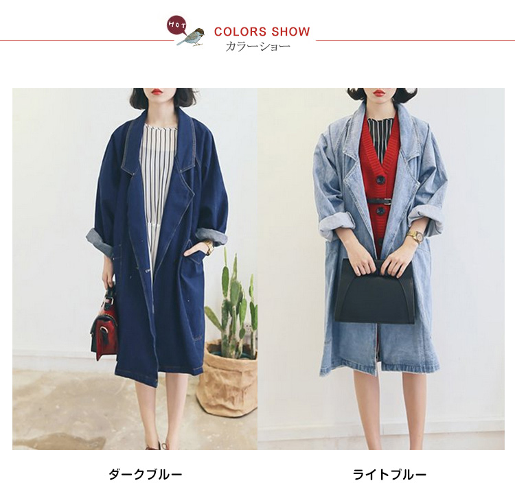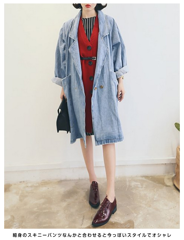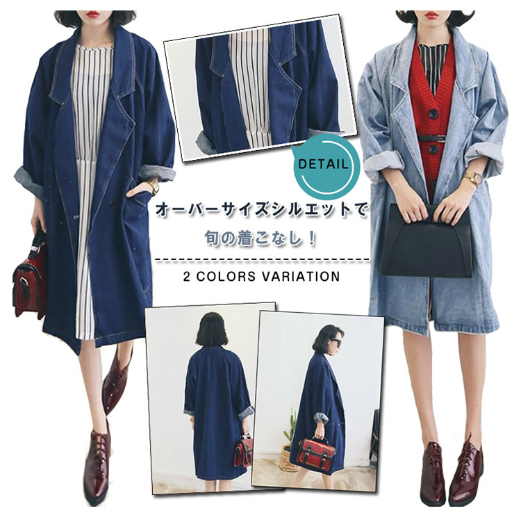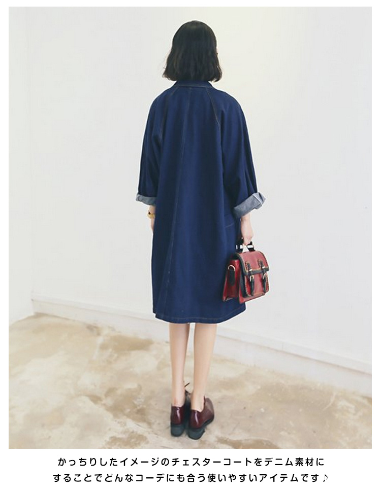 | オーバーサイズシルエットで旬の着こなし!こなれ感ただよう、春秋のデニムアウターが新登場☆やや肩の落ちたオーバーサイズのデザインなので、ゆるっとしたシルエットが可愛い。かっちりしたイメージのチェスターコートをデニム素材にすることでどんなコーデにも合う使いやすいアイテムです♪細身のスキニーパンツなんかと合わせると今っぽいスタイルでオシャレ流行のオーバーサイズアウターは1つはもっていたい! | |