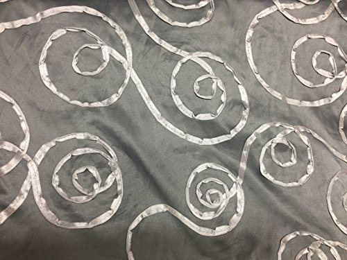 Metal Grey Satin Fabric with Light Grey Satin Ribbon Scroll Design ~ 2 Yds~58"