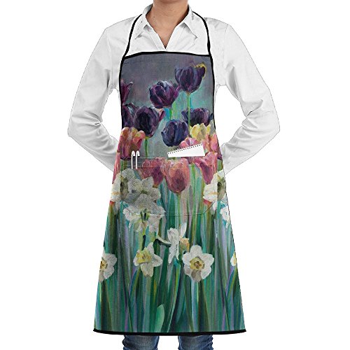 -. Title : 花 油絵 エプロン ポケット付 フリーサイズ 首掛け 男女兼用 キッチン カフェ風 保育士 雑貨屋店員 料理 絵画 防水 防油
