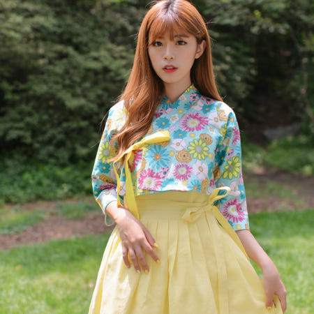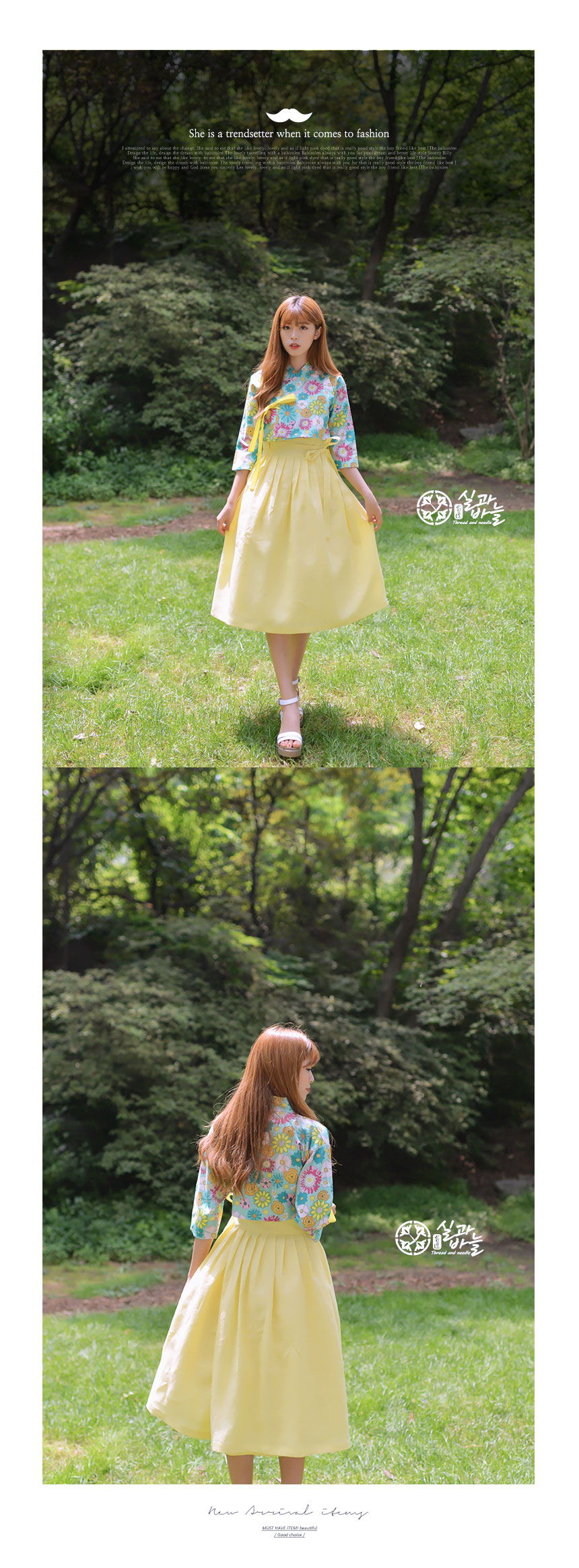 -아쿠아마린과 함께 코디된 허리치마는 "린넨 레몬"입니다