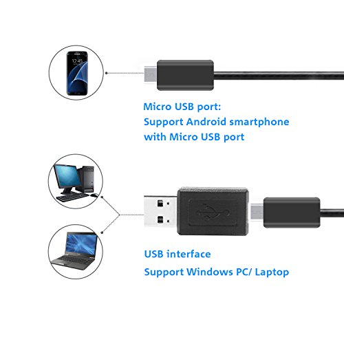 YoFew USB Endoscope Camera 2.0 Megapixels HD Borescope Inspection Camera 2 in 1 Android Endoscope Camera with Adjustable 6 LED Light Waterproof Snake Camera for Android PC 16.4 ft/ 5 Meter
