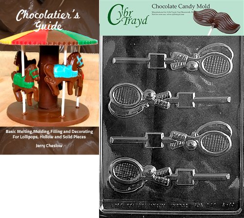 Cybrtrayd Tennis Racquet Lolly Sports Chocolate Candy Mold with Chocolatier's Guide Instructions Book Manual