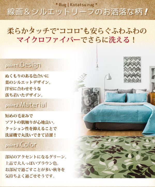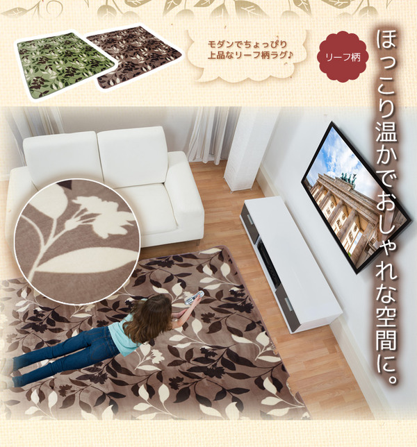 ●軽くて洗えるリーフ柄のラグ!
