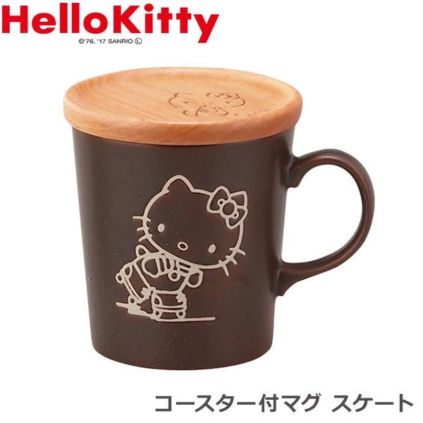 マグにはローラースケートをするキティちゃんがプリントされています。フタにもなるコースターが便利♪ご自宅用にはもちろん、ギフトにもオススメです。 |