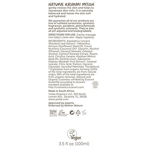 Yorba Organics Baby Body Butter with Wild-Harvested Kalahari Melon, 3.5 Fluid Ounce