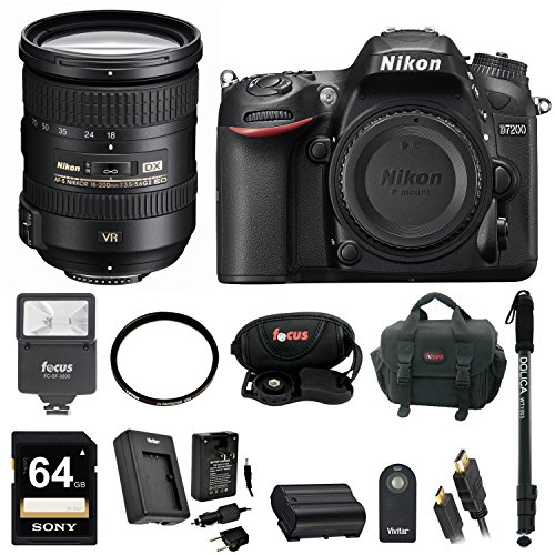 For the first time, the exhilarating image quality, low-light capabilities and speed of a Nikon DSLR are available with the convenience of built-in Wi-Fi and Near Field Communication (NFC). Introducing the D7200, the new star of Nikon's DX-format line-up. Bring your creative vision to life with photos and videos that shine with sharpness and clarity. Shoot in nearly any light, from dawn until after dusk, and capture everything from sports and action to wildlife and everyday moments. Then share your beautiful images easier than ever with a compatible smart device. Whether you're a passionate photographer or videographer looking for a tool to ignite your creativity, a pro in need of a nimble second camera or someone looking for an ideal blend of versatility and convenience, the D7200 is ready for your challenge.Feature