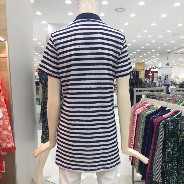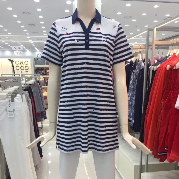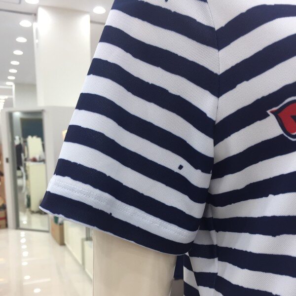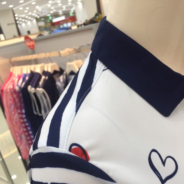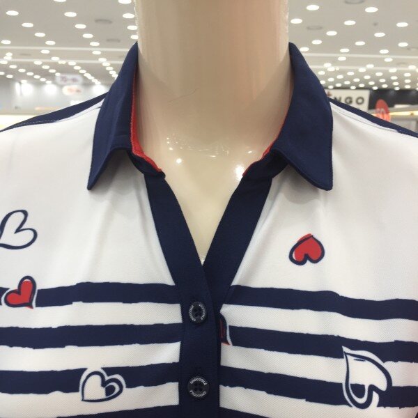 폴리스판 피케 소재를 사용하여 가볍고 시원하며 스트라이프 패턴위에 레드 포인트 하트 포인트를 얹어 경쾌함을 더한 롱기장 카라 티셔츠.