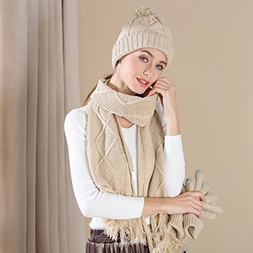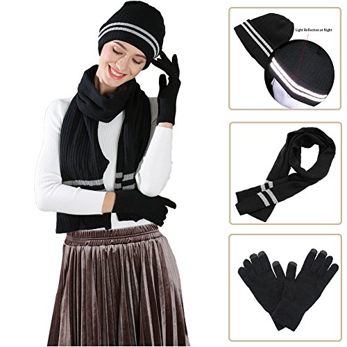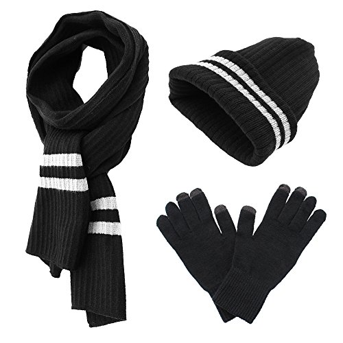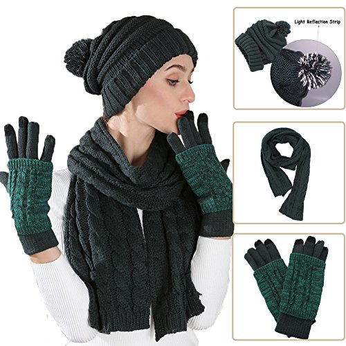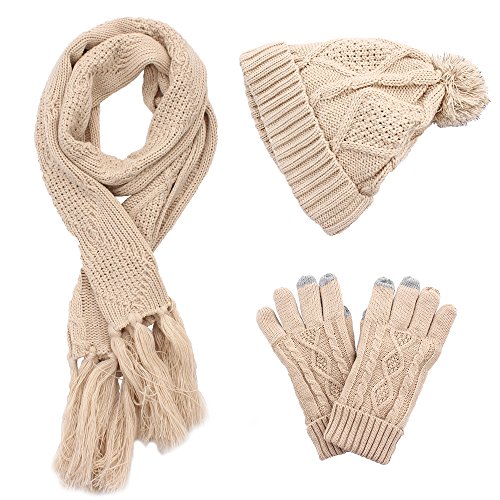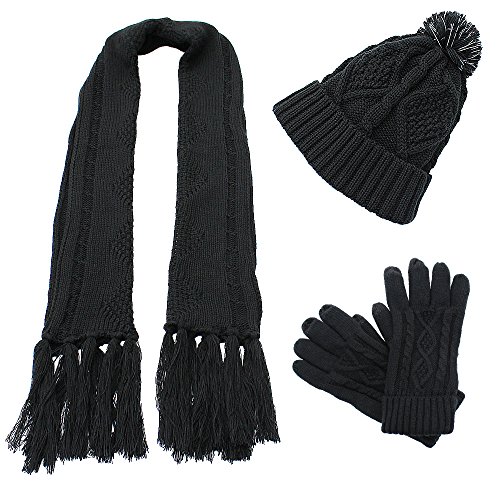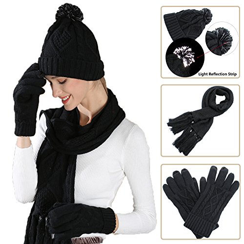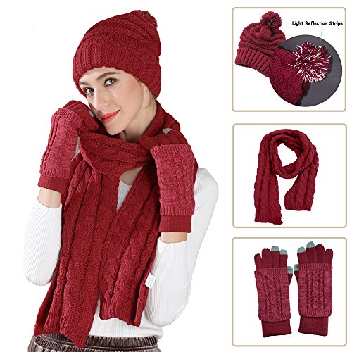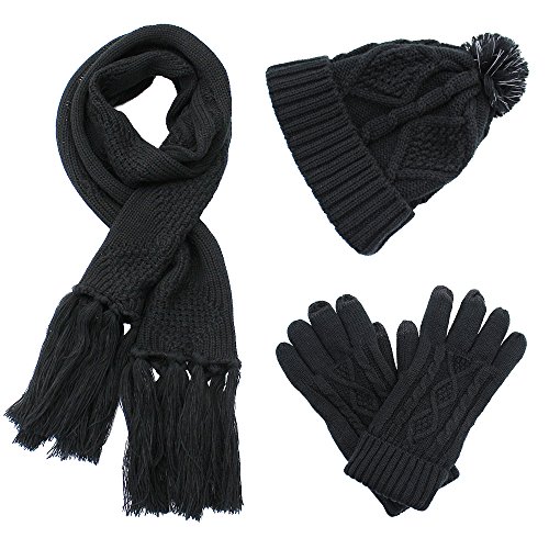 Binding : Apparel Product Description AGOOL 2017 New Fashion 3pcs Soft Warm Cable Knit Pom Pom Beanie Hat Glove Scarf Set This set is made of incredibly soft, comfortable fabrics to give you the best feel and did a lot of improvements in the previous old. In order to keep warm while answering the phone and play the phone, we added touch screen function in the finger of glove. In order to have a better experience, we are different from the general touch screen gloves only designed a touch screen finger, we increased to 3 fingers screen touch to facilitate the mobile phone. We also made a lot of improvement in Hat. The addition of the reflective filament in the pom pom ball to improve the security for the snowy night walking. SPECIFICATION: 1,Brand:AGOOL 2, Color:Red/Moss Green/Beige/Black/Navy/Black Stripe 3, Material:100% Acrylic Velvet 4, Scarf Size:75.6"(L) X 10"(W) 5, Glove Size: 10.5"(L) X 4.5"(W) 6, Beanie Size: 8"(L), 10"(W), head length 20" 7, Occasion: Great for any outdoor sports,such as running,cycling,hiking,hunting,camping, skiing and so on. 0