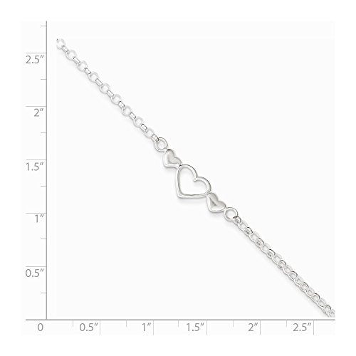 Solid 925 Sterling Silver 10inch Polished Triple Heart Anklet 10" (7mm)