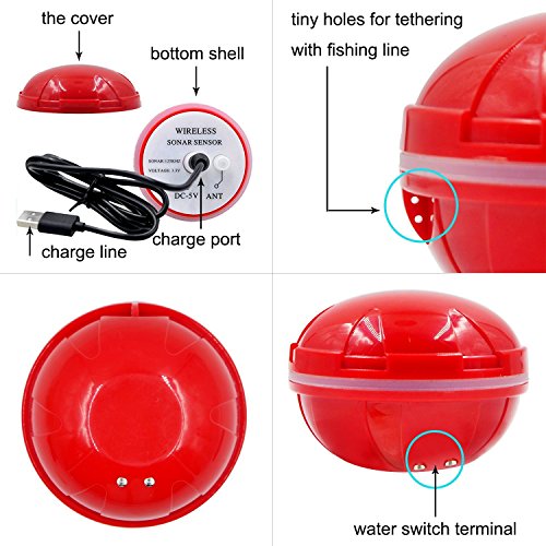 - Fish Alarm, Noise Filter, 10-degree sensitivity for user to select, Sonar Frequency: 125kHz, Depth up to 120ft/36m, Rechargeable 3.7V Lithium battery long life up to 10 hours.