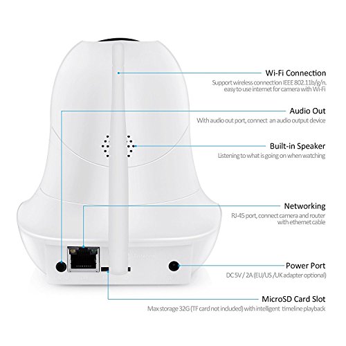 Responsive and advanced microphone with a built-in anti-noise filter for a clear 2-way Audio experience. Receive real-time Activity Alerts while you're out. 10-sec motion tracking records and centers the moving object. Provide real-time push notifications with captured images (Rich Media Message Push) via smart phone while you're away.
