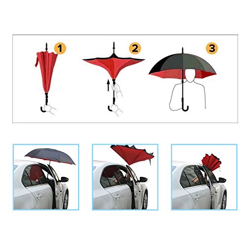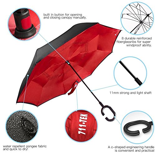 -. Title : Inverted Umbrella & Reverse Umbrella, 711TEK Double-Layer Waterproof Straight Umbrella, UV Protection Inside-out Folding Umbrella for Car with C-Shaped Handle