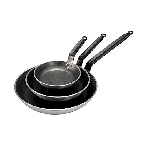 Non-stick round Fry Pan Perfect for gentle cooking and reheating Lyonnaise shape Extra-thick aluminum Bottom in induction-friendly AISI 304 ferritic stainless steel High-end coating Professional quality resistance Optimal slip Epoxy coated riveted steel handle resistant to high temperatures French-style curving For all cooktops including induction Made in France.