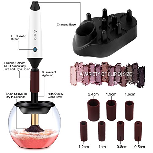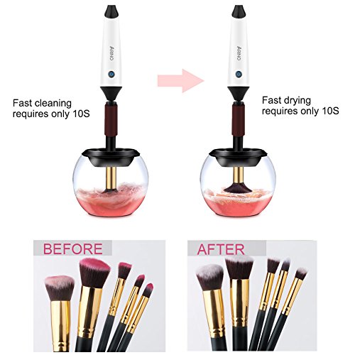 Electric Makeup Brush Cleaner ARINO Professional Makeup Brush Cleaner and Dryer Machine, Quick 360 Spin Makeup Brush Cleaning Kit Solution Rechargeable - Clean and dry Cosmetic Brush in Second