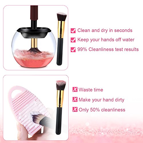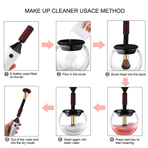 Noiseless & Strong Rotating: The electric makeup brushes cleaner is equiped with high speed motor and durable structure, which can ensure the brush is always rotated in a steady way. The spinner cleaner is also noiseless when you are using it. This makeup brushes cleaner provides you a thorough cleaning way but less harmful for various facial and eye makeup brushes.