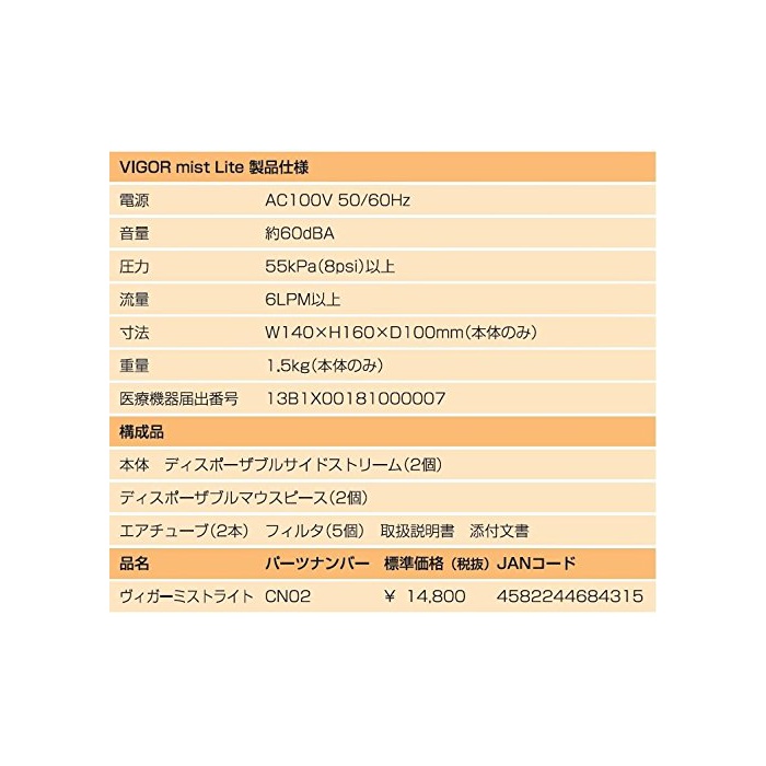 원본상품명: 高性能ネブライザ ヴィガ?ミストライト 【吸入器】