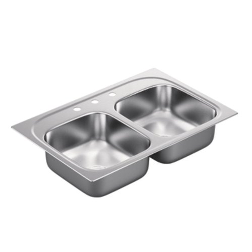 Moen G202153 2000 Series 20 Gauge Double Bowl Undermount Sink, Stainless Steel
