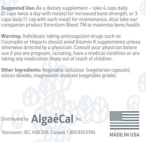 - Feature : AlgaeCal Plus has been CLINICALLY SUPPORTED to increase bone density - even in 80 year old women. / Plant calcium is BEST ABSORBED, easier to digest and will not cause bloating, gas, or constipation / Natural calcium supplement & bone building complex made from all natural ORGANIC ingredients. 3 vitamins and 73 trace minerals aid in restoring your bones to a strong, healthy state / ALL NATURAL INGREDIENTS - Certified USDA Organic - Made from wild, hand harvested South American sea algae at a FDA CERTIFIED facility in San Diego, California. Only The FINEST NATURAL INGREDIENTS! / Ships from USA to USA.