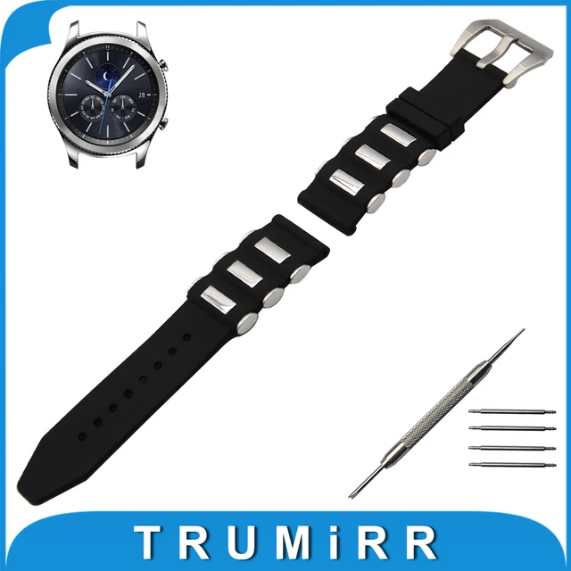 22 미리메터 실리콘 고무 시계 밴드 samsung gear s3 클래식/프론티어 스테인레스 스틸 사전-v 버클 스트랩 손목 벨트 팔찌