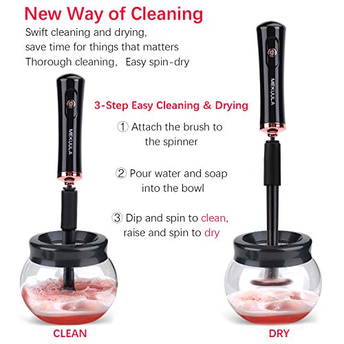 Makeup Brush Cleaner, MEKUULA Electric Spinner Machine Makeup Brush Cleaner and Dryer with Strong Motors and Dry in Seconds,8 Rubber Collars for All...