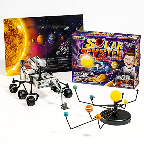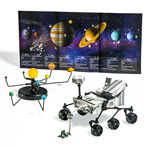 -. Feature : Fun and educational / Performance and quality tested / Great fun for children of all ages / 21-piece snap-together light-up solar system model / Planet label sticker sheet / 18 piece plastic curiosity model pieces / 10 punch-out Curiosity model pieces / Solar System poster with fun facts