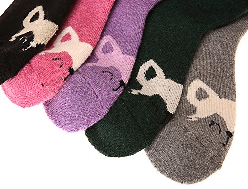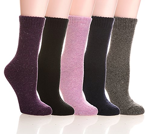 -. Feature : WINTER SOCKS Fabric: Wool 42% , Cotton 22%, Polyester 31% and Spandex 5%.Please do not iron them and sesting wash them by hand, Great quality Wool socks require the proper care! / Package include: 5 pairs of socks (mixed colors).FUNCTIONAL: Moisture wicking, keep your feet from getting sweaty. No itchy, non-binding. This sock knit is very accommodating. The cuff stays up, doesn't slide around, and doesn't squeeze your ankle. / A PERFECT FIT - Women's socks are sized US 9 to 11 to fit women and teens with shoe sizes 5 to 10. / PERFECT FOR MANY OCCASIONS- Winter socks Applicable to Many Occasions, Casual , Various events, Dinner party, Wear to Work, Home, Sports,etc. Perfect For any occasion! / We offer a 100% Satisfaction Guarantee, so click the yellow "Add to Cart" button and order them today!
