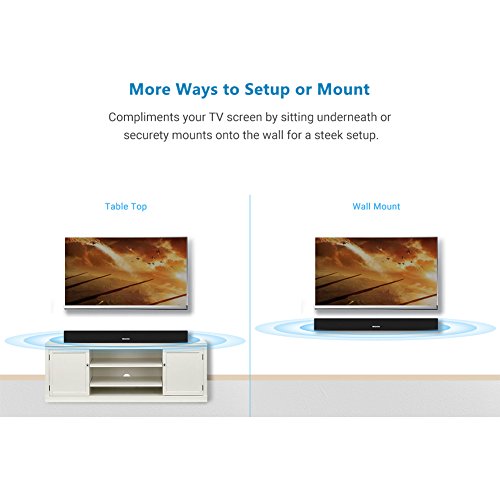 -. Feature : 28 Inch 40 Watt TV sound bar: Deep bass performance with virtually no distortion, compelling surround effects for theater-like sound. With integrated dsp (movie/music/news) technology for amazing clarity and precision. / Dual Wired & Wireless Installations: Stream audio over Bluetooth from up to 33 ft / 10 m or connect via RCA, coaxail or optical with the included cables / Control with Buttons or Remote: Operates via the in-unit buttons or included remote; LED shines in different colors matching the functions. / Slim sleek design: Elongated construction blends in perfectly with your home theater setup by matching the slim profile of your TV. / The sound bar has no code for universal remote (directv, comcast,....etc), if the universal remote has IR learning feature could program and control the sound bars volume.