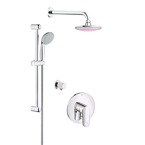 Set includes everything you need for quick installation: europlus PBV trim set bath, rain shower solo head shower pink, rain shower arm, new tempesta 100 shower rail set, relexa wall union
