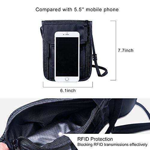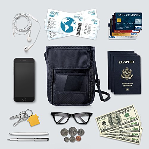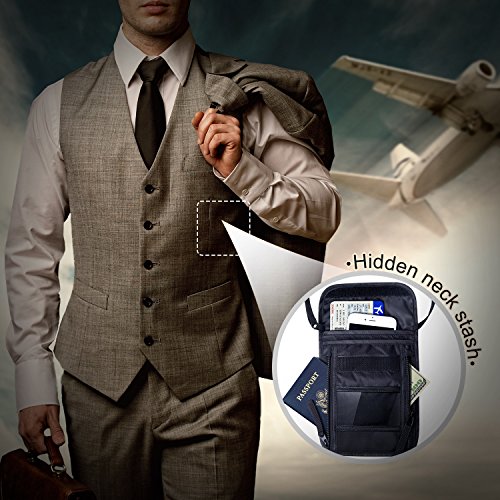 Product Description A must have for travelling abroad - Keep everything handy in one bag - Stay prepared for frequent inspections - Protect your valuable passport or credit card information from electric thieves with RFID blocking technology - Wear it underneath clothes and keep a low profile from pick-pocketing Unique features that make FREETOO Neck Stash a best choice for travelers: ① Large capacity for 4 passports and more There are 3 zippered compartments, 2 Velcro closure pockets, 1 mesh panel layer and 1 transparent card holder, capable of holding at least 4 passports, as well as other necessities such as mobile phones, cash, credit cards, air tickets, keys, coins, maps, etc. neatly organized. ② Stay away from electric thieves Nothing could be more disturbing to think that your passport and credit cards may expose to electronic pocket picking when you are travelling around. Safeguard your vital ID and financial information with FREETOO Passport Wallet with RFID blocking function, to protect yourself from electric thieves and restore peace in mind during your journey. ③ Breathable wearing comfort Designed to be soft and ventilated, the back panel with a sandwich mesh layer is comfortable to wear against belly, and also has room to hold items as map and air tickets for quick access. ④ Wear-resistant and waterproof Made of nylon material with best wear and water resistance, keeping your documents and valuables safe and dry. ⑤ Adjustable neck loop Wear it either as a neck stash or a sling bag, and enjoy your journey lightweight, light-hearted and hand free. 0