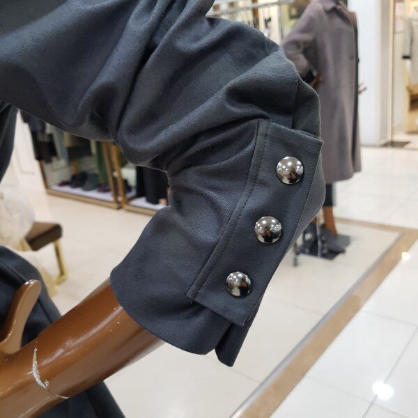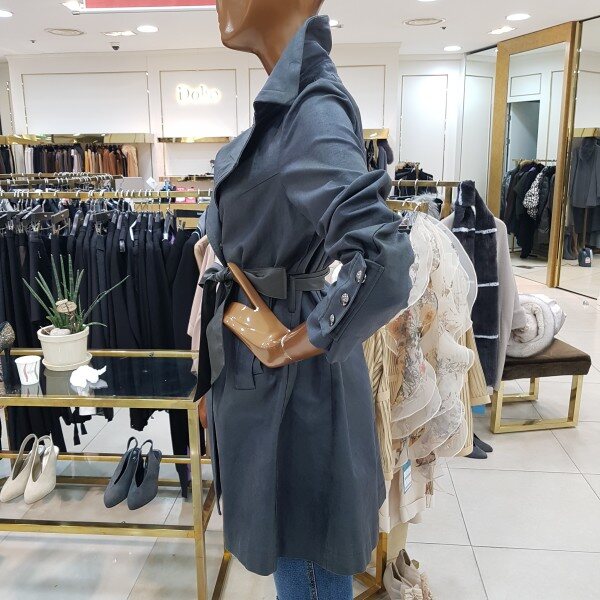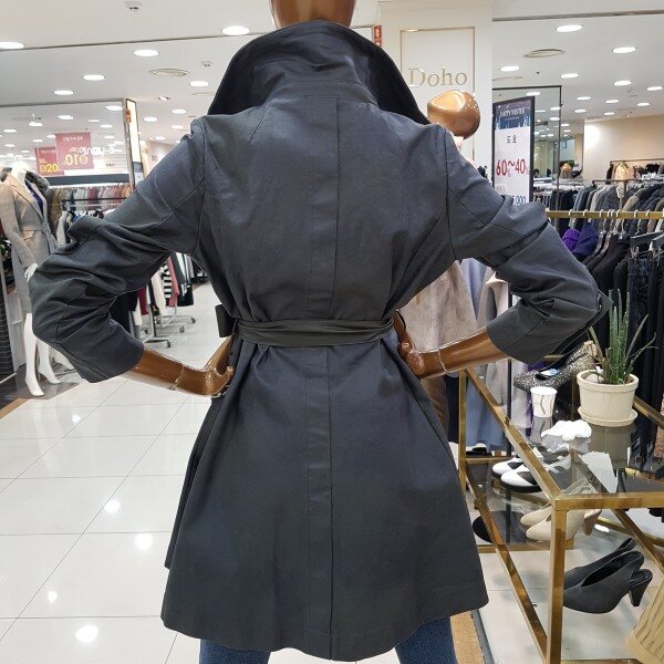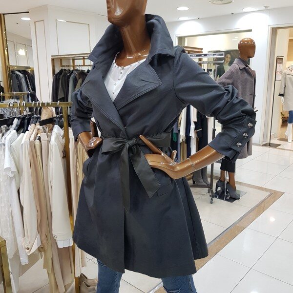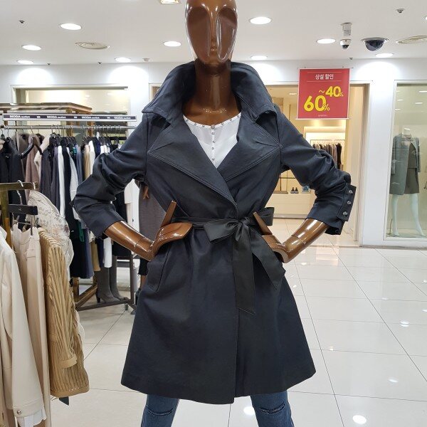 메모리소재에 카라에 와이어가 들어간 캐쥬얼 바바리 디자인으로 벨트를 묶어서 입으면 원피스느낌이 나는 스타일입니다.