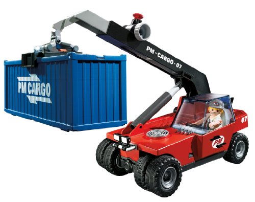 -. Binding : Toy -. Brand : PLAYMOBIL® -. EAN : 4008789052568 -. Feature : Easily move large containers with the Cargo Transporter / Adjust the height and angle of the crane with the extendable arm / Transporter crane comes with both a container clamp and a forklift attachment for added functionality / Figures can bend, sit, stand and turn their heads / Includes one figure and container -. IsAdultProduct : 0 -. ItemPartNumber : 5256 -. Label : Playmobil - Cranbury -. Manufacturer : Playmobil - Cranbury -. Model : 5256 -. MPN : 5256 -. PackageQuantity : 1 -. PartNumber : 5256 -. ProductGroup : Toy -. ProductTypeName : TOYS_AND_GAMES -. Publisher : Playmobil - Cranbury -. SKU : B0077QSSEU -. Studio : Playmobil - Cranbury -. Title : PLAYMOBIL Cargo Transporter with Container -. UPC : 433599200429 -. Warranty : 30 day warranty against manufacturer defects