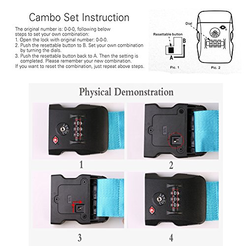 ABOUT TSA Luggage Straps of Dofover: In the US Customs inspection,Use ordinary luggage locks will have to be forced to cut customs officers checked the lock,When using the TSA lock, the customs officers see the diamond logo and know that they are opened with their unique keys without breaking the lock.TSA system common to more than 40 countries the United States, Canada, Japan, etc.