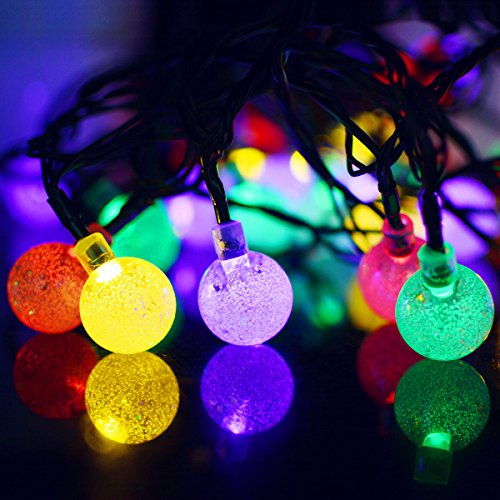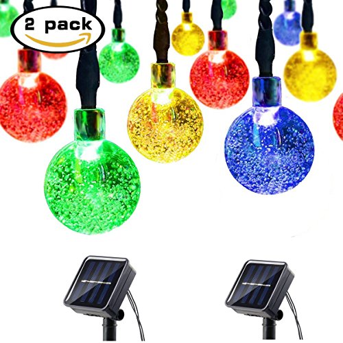 Globe Outdoor Solar String Lights 30 LED (19.7ft ) Waterproof Fairy Bubble Crystal Ball Christmas String Lights Holiday Wedding Garden Patio Party Thanksgiving Decoration Lights, 2-PACK (Multicolor)