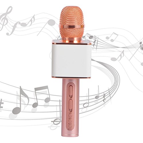 -. Feature : 【Multifunctional Magic Microphone】-3 in 1 multifunctional speaker,can be as a normal microphone,a high quality treble bass speaker and wireless karaoke microphone,compatible with both Android and iphone system automatically / 【Wireless or Wired Speaker】-The wireless karaoke microphone with bluetooth speaker and 3.5mm audio cable,can play music from mobile phone or tablets by bluetooth paired or audio cable to connect directly / 【Support USB disk and TF Card】- Support to play music from USB disk and TF card independently / 【Smart Echo】-Smart noise cancellation echo effect, provides you a high quality singing experience even at max volumn no any distortion / 【Safety Duration Battery&Dust Proof Bag】-Built-in 2200mAh safety multiprotect li-polymer Battery, which has more than 5 hours duration. Can be used more stable and longer;A portable dust proof bag is a convenient plus for picnic trips, outdoor party
