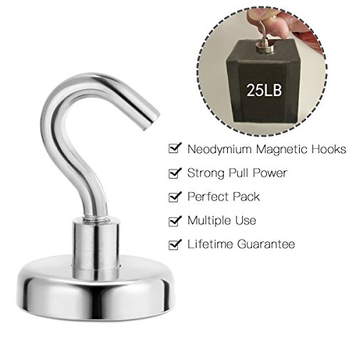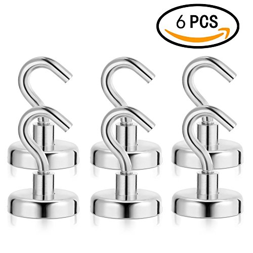 Magnetic Hooks 6 Pack, Super Strong 25LB Neodymium Heavy Duty Magnetic Hooks, Multi Use Hanging Tools for Storage and Organization