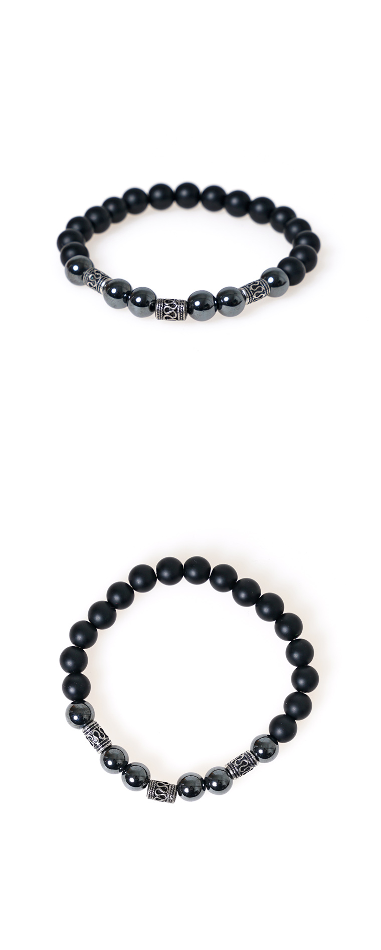 8mm 무광오닉스와 헤마타이트 원석을 믹스해 제작된 팔찌입니다. 블랙톤 베이스로 무광블랙과 유광 헤마타이트가 잘 어우러지도록 배치하고 앤틱실린더장식을 포인트로 믹스해 부담없이 착용 가능한 디자인입니다. 가죽팔찌 등 다른 악세사리와 함께 레이어드하면 더욱 잘 어울립니다. 커플팔찌로 착용하기 좋도록 남성용, 여성용, 주문제작 사이즈로 제작됩니다.