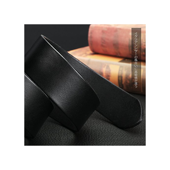 Niksa 소가죽 가죽 벨트 맨즈 비지니스 캐주얼 스테인레스제 버클 사이즈 조정 가능 블랙 【기프트용BOX가 부속】