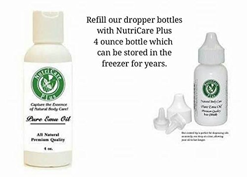 Our 4oz/120ml Plus Pure Emu Oil bottles can be purchased to refill our .5oz/15ml and the 1oz/30ml dropper bottles. This allows you to put the 4oz bottles in the freezer where they will last for several years.