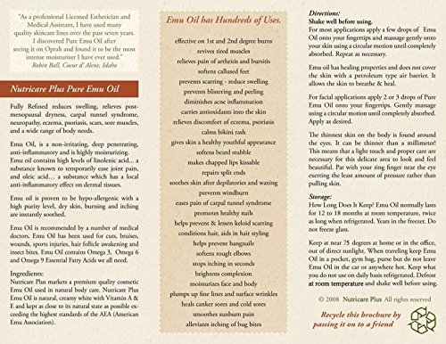 Pure Emu Oil fights infection with anti-bacterial and anti-inflammatory properties. Emu Oil penetrates several layers of skin, but will not clog pores.